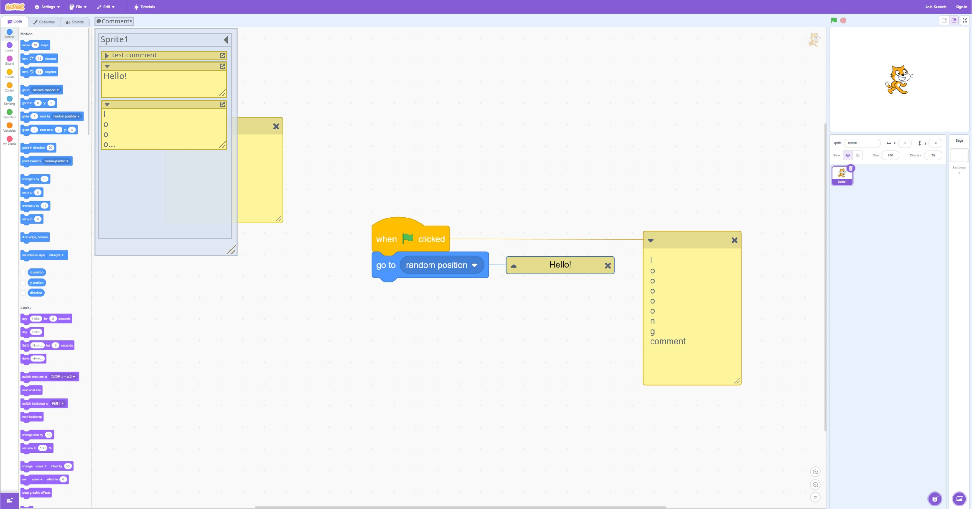 The feature will display the comments, which are separated by sprite, in a summarized form in the editor. It would be great if you could jump to the comments from the list and edit them directly!
